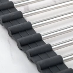 Highport Oprolbaar Vaat Droogrek – Scandinavisch Design – Opvouwbaar Hittebestendig Roestvrijstalen Keuken Afdruiprek – Vaatwasser Geschikt – Sterke 18-staafs Onderzetter – Foodgrade Materiaal
