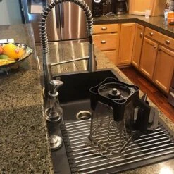 Doordat je het rekje boven je wasbak plaatst, valt het water meteen in de wasbak en stroomt het samen met alle bacteriën de riolering in. Bij een ander rekje laat je het er vaak weken staan waardoor bacteriën beginnen te ontstaan en de vuiligheid begint op te hopen.