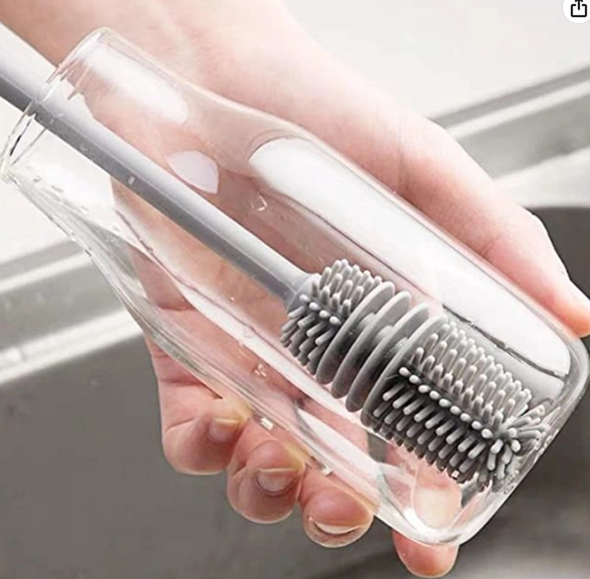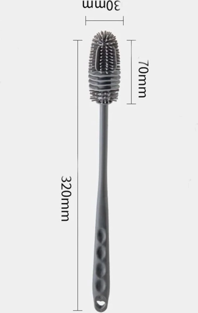 Met deze grijze siliconen afwasborstel kun je makkelijk de lange glazen schoonmaken.