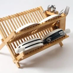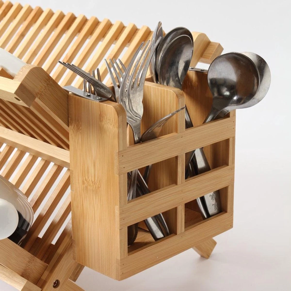 Merkloos Decopatent® Afdruiprek Voor Afwas – Bamboe – Hout – Inklapbaar Afdruiprek – Afwasrekje Inclusief Bestekhouder – Afwas Druiprek
