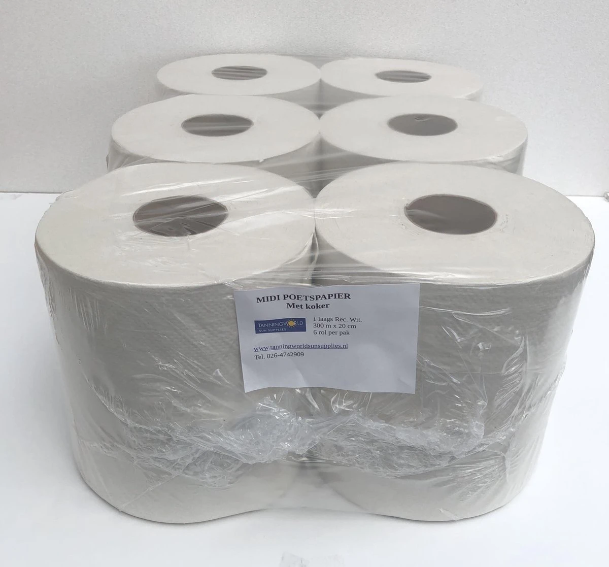 | Verpakkingsinhoud | 6 rollen van 300 meter. 1 laags recycled. |