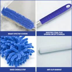 De Plumeau is van Microvezel, waardoor het gemakkelijk stof oppakt. In tegendeel tot een gewone Plumeau die ongemerkt het stof vooral verspreid. Het opzetstuk is flexibel en buigbaar en neemt dus gemakkelijk het stof uit alle kleine hoeken of kieren mee. Is de stoffer veelgebruikt en ben je aan een frisse stoffer toe? Dan maak je deze zo schoon. De opzetstukken zijn wasbaar, zodat je niet een langere tijd het oude stof meeneemt.