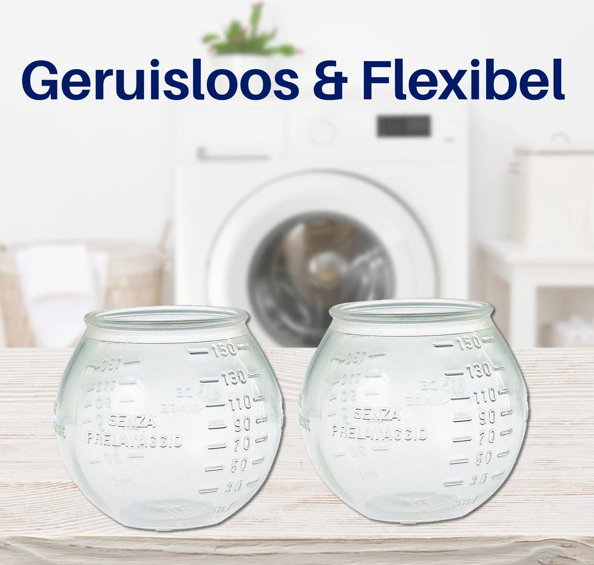 Waspakket – 6 Drogerballen – 2 Wasbollen – Maatschepje – Wasdoekje – Doseerbol – Wasbol – Doseerbollen